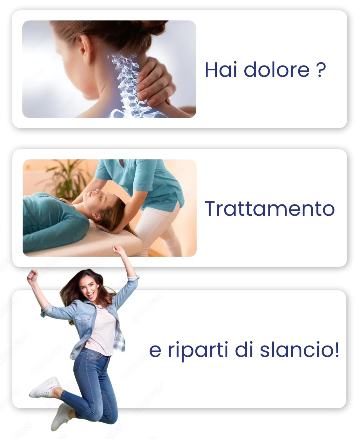 Dolori muscolo-scheletrici, Cefalea, Emicrania, Disturbi gastroenterici. Donne pre-parto, post-parto, situazioni uro-genitali.